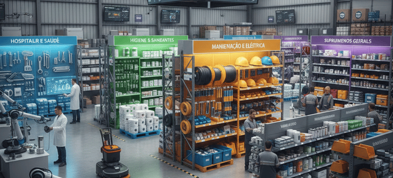Atuamos de forma diversificada para suprir todas as demandas da sua operação. Oferecemos desde materiais médicos e laboratoriais até uma linha completa de higiene e saneantes. Nosso portfólio inclui ainda ferragens, ferramentas e materiais elétricos, além de suprimentos gerais que garantem o suporte total ao seu negócio em um só lugar.